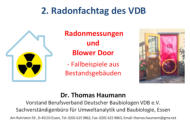 Publikationen Anbei eine Übersicht über einige Veröffentlichungen und Vorträge zum Thema Radon aus den letzten Jahren und die Publikationsliste von Dr. Thomas Haumann. Einige Beiträge stehen auch als download zur Verfügung: Haumann Th.; „Radon – ein unbemerkter radioaktiver Innenraumschadstoff“, Der Zimmermann 7. - 8.2020 (2020), BRUDERVERLAG Albert Bruder Haumann Th.; „Radon in Innenräumen – Teil 1 und Teil 2“, Gebäudeschadstoffe und Innenraumluft (2020) Band 10 und 11, Rudolf Müller Verlag Haumann Th.; „Radon – ein signifikantes Lungenkrebsrisiko im Innenraum, Gefahrstoffe – Reinhaltung der Luft 79 (2019) Nr. 3 – März, VDI-Fachmedien Haumann Th.; „Radonschutz in der Praxis“, der Bauschaden 34, 7. Jahrgang Ausgabe Februar/März 2019 Haumann Th.; „Radon 2.0" im Tagungsband zum Kongressprogramm DCONex, 30.1.2019 in Essen Haumann Th.; „Messtechnik Radon“, 19. Deutscher Sachverständigentag 09.11.2017 in Leipzig Haumann Th. und Münzenberg U.; „Radonmessungen im Unterdruckverfahren“  B+B Bauen im Bestand, Rudolf Müller Verlag, 40. Jahrgang Dezember 2017 Haumann Th.; „Radonmessungen und Blower Door - Fallbeispiele aus Bestandsgebäuden“, 2. Radonfachtag des Berufsverbandes Deutscher Baubiologen VDB e.V. am 4. Mai 2017 im Bauzentrum München Haumann, Th.; "Radonbelastungen in Gebäuden - Ein verkanntes Risiko?" Vortrag zum 15. BUND - Umweltsymposium am 10. September 2016 in Mainz Haumann Th.; „Radon-Messverfahren“, 12. AGÖF-Fachkongress 17.11.2016 in Hallstadt bei Bamberg Haumann, Th.; "Radon - Sanierung und Prävention" In: Tagungsband zum Kongressprogramm DCONex, 13. Januar 2016 in Essen Haumann Th.; „Thoron in Lehmhäusern  - Materialprüfungen und Fallstudien“, 1. Radonfachtag des Berufsverbandes Deutscher Baubiologen VDB e.V. am 23. April 2015 im Bauzentrum München -> Veröffentlichungen, Vorträge und Publikationsliste